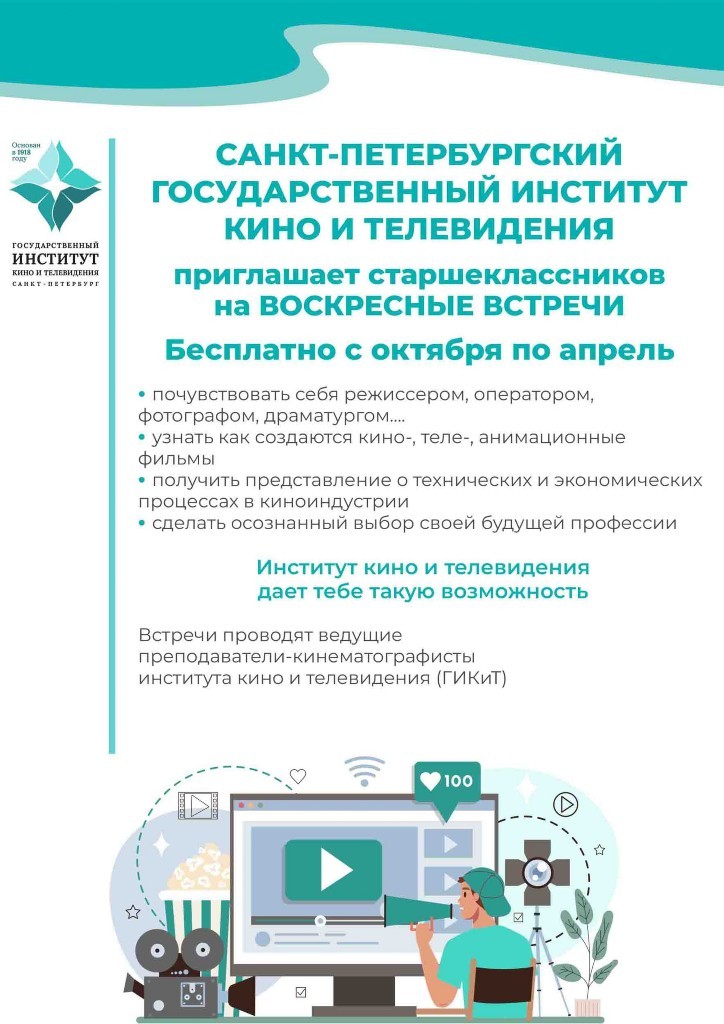 Санкт-Петербургский государственный институт кино и телевидения приглашает абитуриентов на на Воскресные встречи и День открытых дверей!