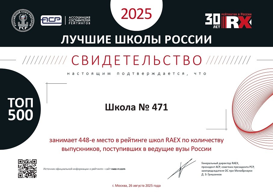 Школа входит в список лучших 500 школ России, показывающих стабильно высокие образовательные результаты учащихся!