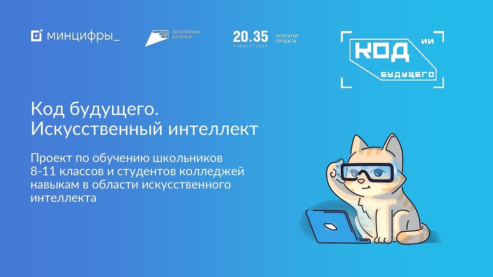 Минцифры России в рамках федерального проекта «Кадры для цифровой трансформации» национального проекта «Экономика данных и цифровая трансформация государства» реализует проект «Код будущего. Искусственный интеллект», направленный на обучение школьников 8-11 классов базовым навыкам искусственного интеллекта. Федеральным оператором проекта «Код будущего. Искусственный интеллект» является АНО «Университет Национальной технологической инициативы 2035».