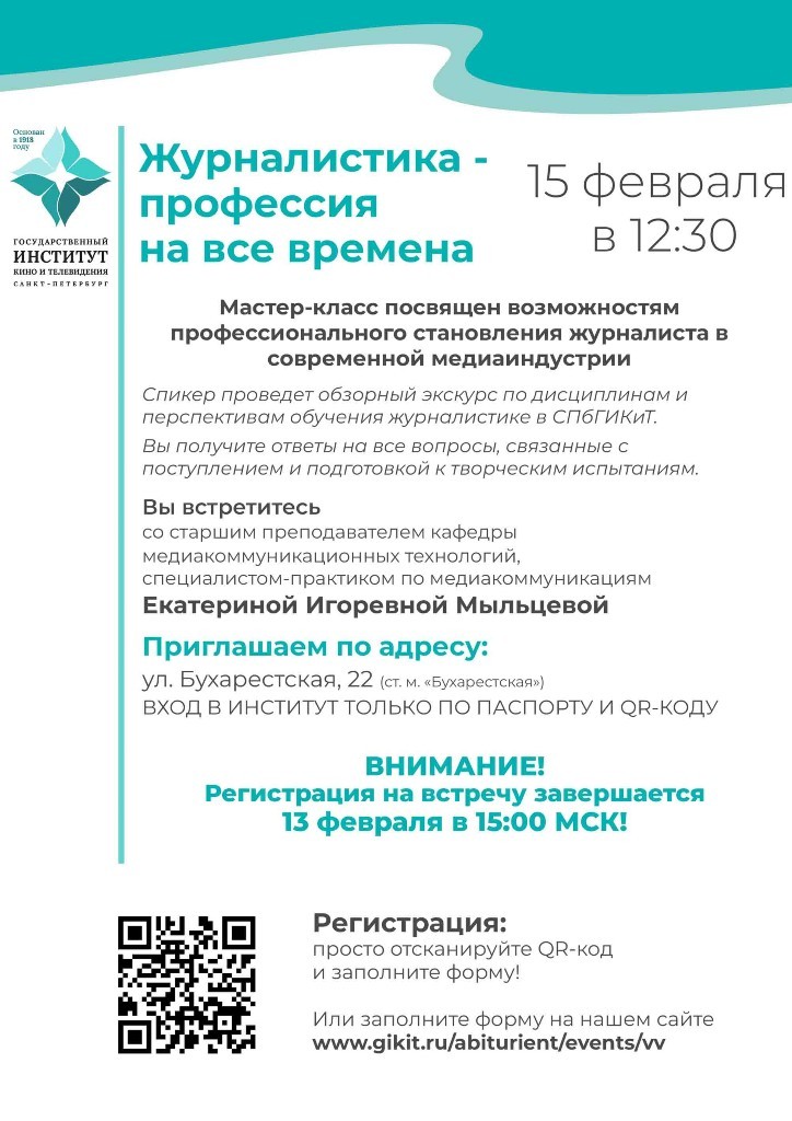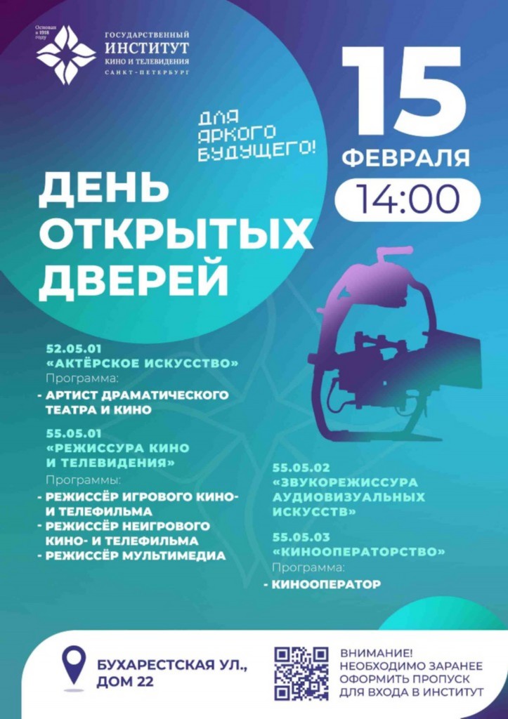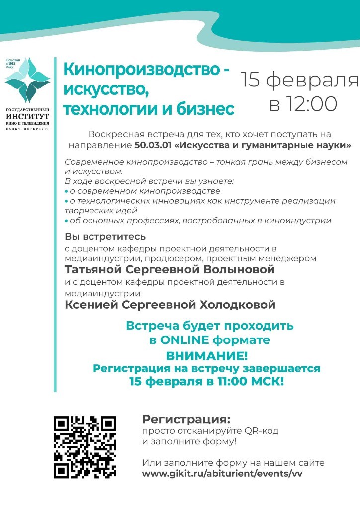Санкт-Петербургский государственный институт кино и телевидения приглашает абитуриентов на на Воскресные встречи и День открытых дверей!