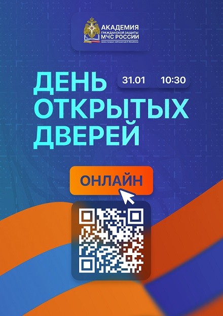 31 января 2026 г. в ФГБВОУ ВО «Академия гражданской защиты МЧС России» День открытых дверей в онлайн-формате. Информационные комнаты доступны на сайте Академии https://amchs.ru/. Для предварительного ознакомления информационные материалы размещены по ссылке